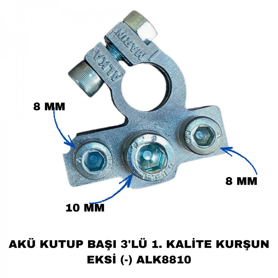 AKÜ KUTUP BAŞI 3'LÜ 1. KALİTE KURŞUN EKSİ (-) ALK8810