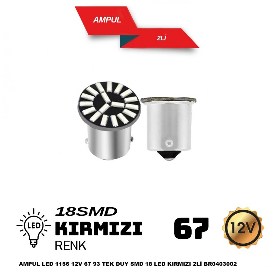 AMPUL LED 1156 12V 67 93 TEK DUY SMD 18 LED KIRMIZI 2Lİ BR0403002