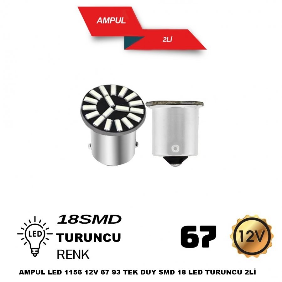 AMPUL LED 1156 12V 67 93 TEK DUY SMD 18 LED TURUNCU 2Lİ