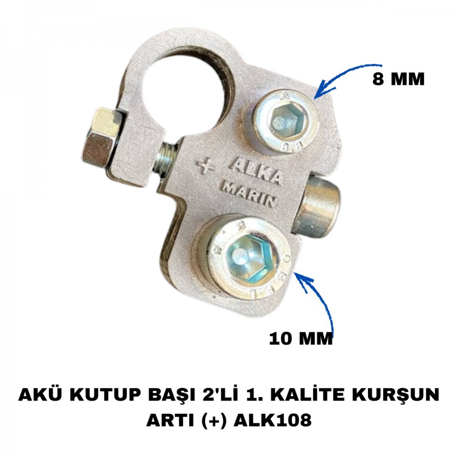 AKÜ KUTUP BAŞI 2'Lİ 8MM 1. KALİTE KURŞUN ARTI (+) ALK88