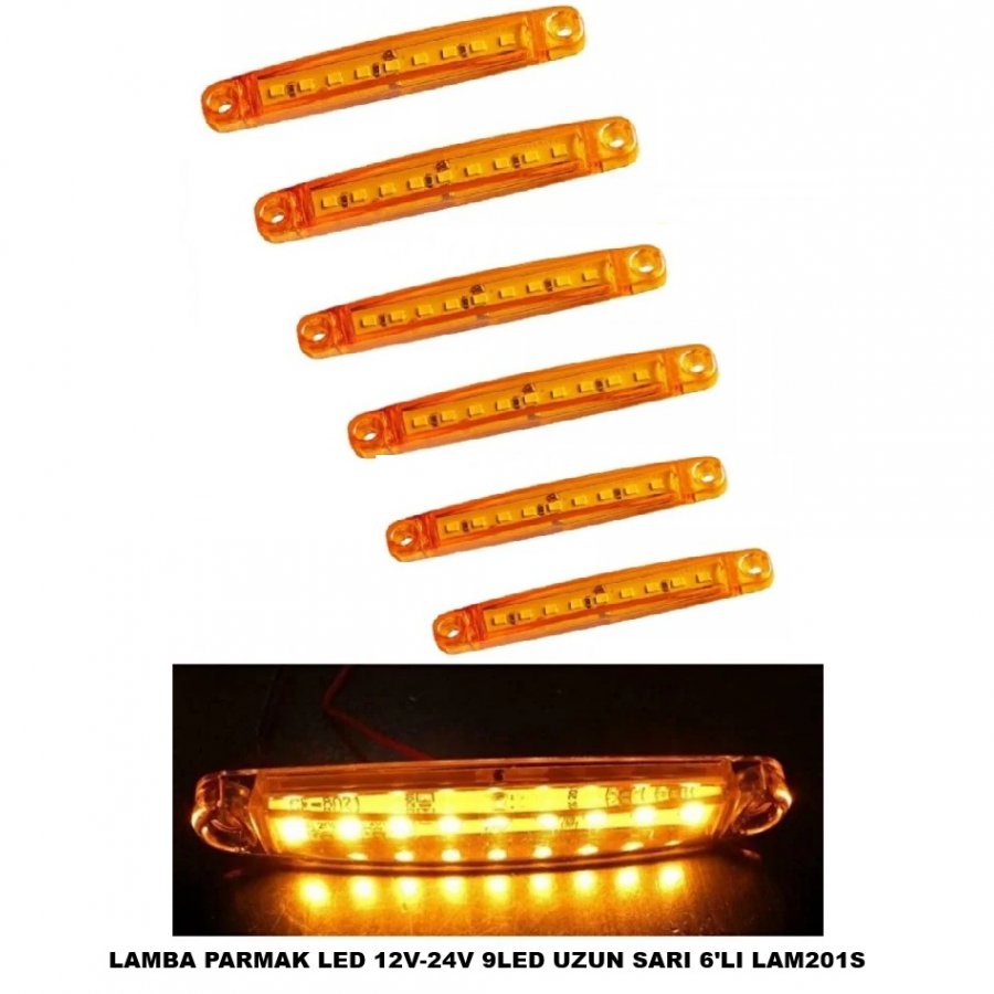LAMBA PARMAK LED 12V-24V 9LED UZUN SARI 6'LI LAM201S