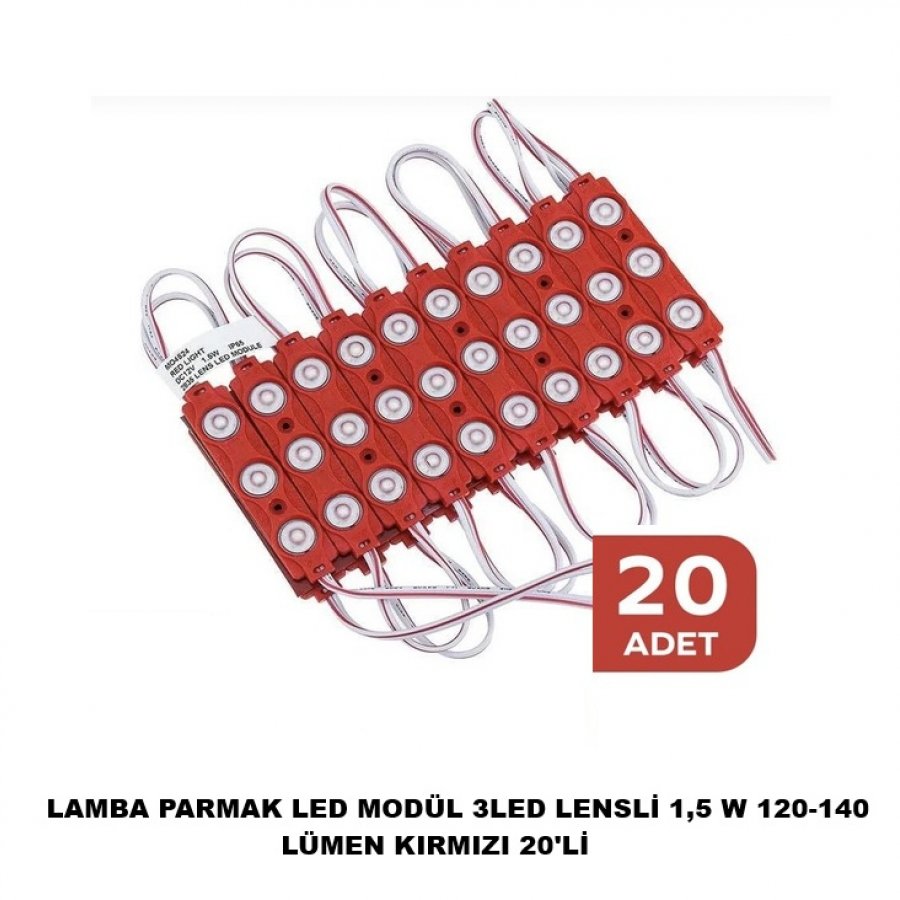 LAMBA PARMAK LED MODÜL 3LED LENSLİ 1,5 W 120-140 LÜMEN KIRMIZI 20'Lİ
