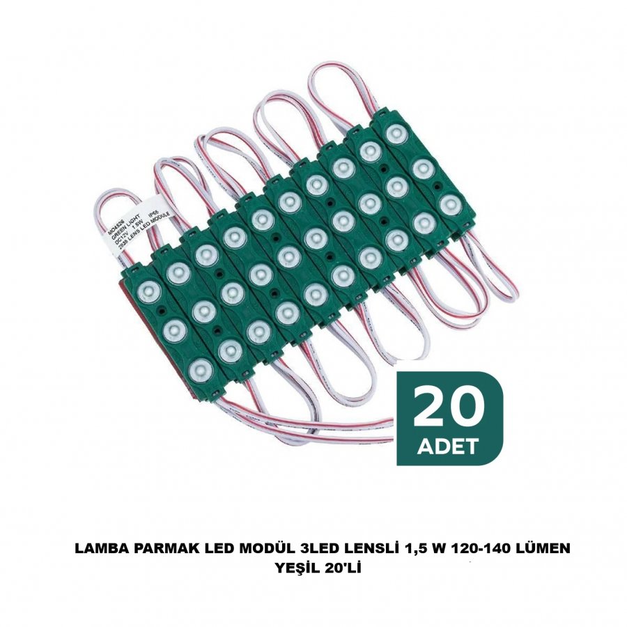 LAMBA PARMAK LED MODÜL 3LED LENSLİ 1,5 W 120-140 LÜMEN YEŞİL 20'Lİ