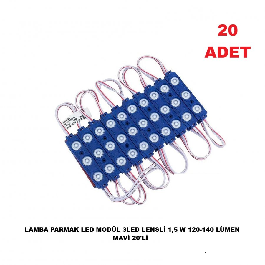LAMBA PARMAK LED MODÜL 3LED LENSLİ 1,5 W 120-140 LÜMEN MAVİ 20'Lİ