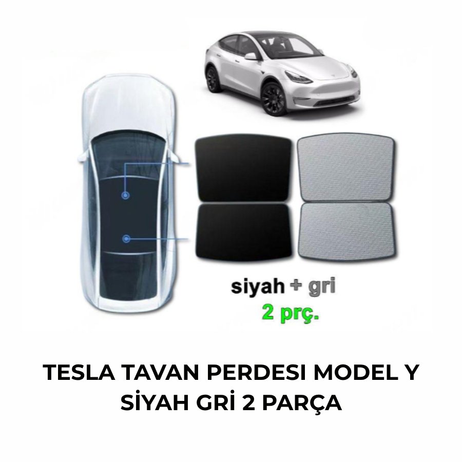 TESLA TAVAN PERDESI MODEL Y SİYAH GRİ 2 PARÇA TSL02