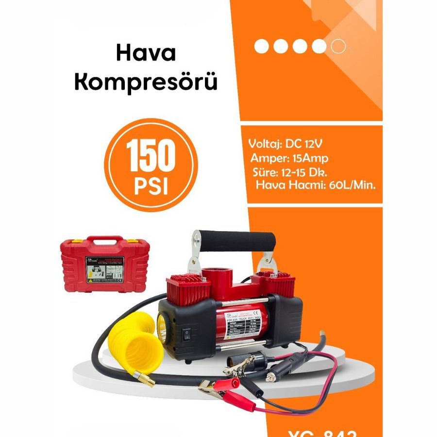 HAVA KOMPRESÖRÜ 12V 15AMP 150 PSI FENERLİ ÇANTALI YG-842