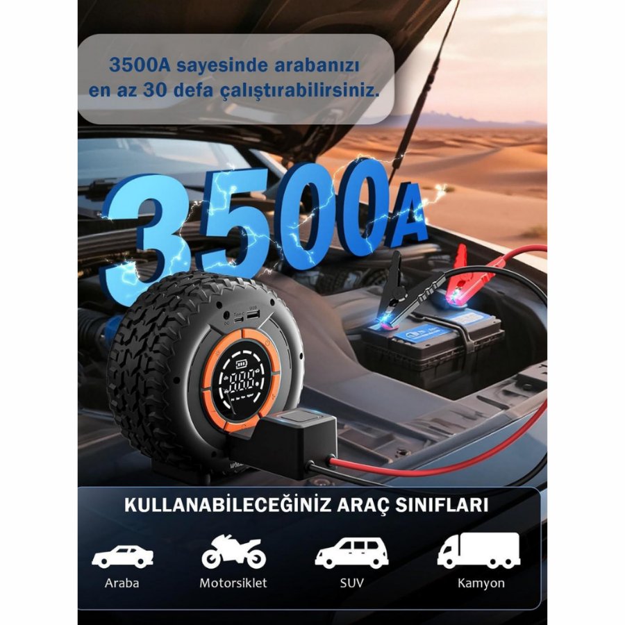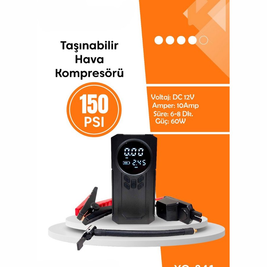 HAVA KOMPRESÖRÜ ŞARJLI DİJİTAL EKRANLI 12V 10AMP 60W 150 PSI AKÜ TAKVİYESİ VE POWERBANK YG-841