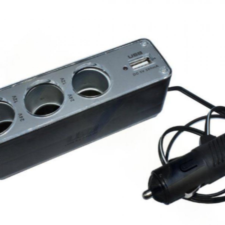 ÇAKMAK ÇOĞALTICI 3 LÜ 3 RENK IŞIKLI ÇİFT USB Lİ KABLOLU 1632 12V-24V 120W