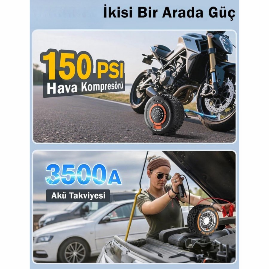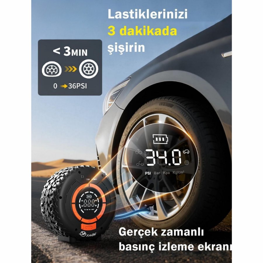HAVA KOMPRESÖRÜ ŞARJLI DİJİTAL EKRANLI 12V 10AMP 60W 150 PSI AKÜ TAKVİYESİ VE POWERBANK YG-841