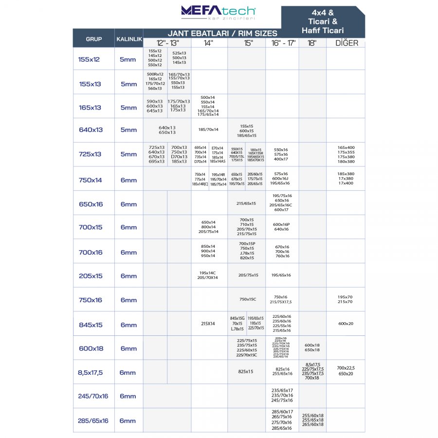 Ana Sayfa > Serme Kar Zincirleri > ZİNCİR 750X16 MERDİVEN TİP SERME MEFATECH